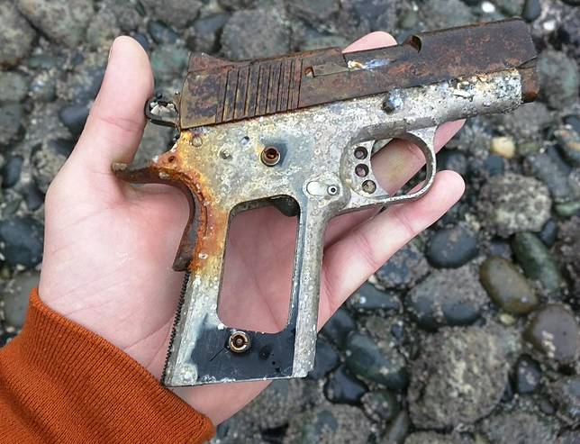 Pistol ini ditemukan di Taman Discovery, Seattle, Amerika Serikat.