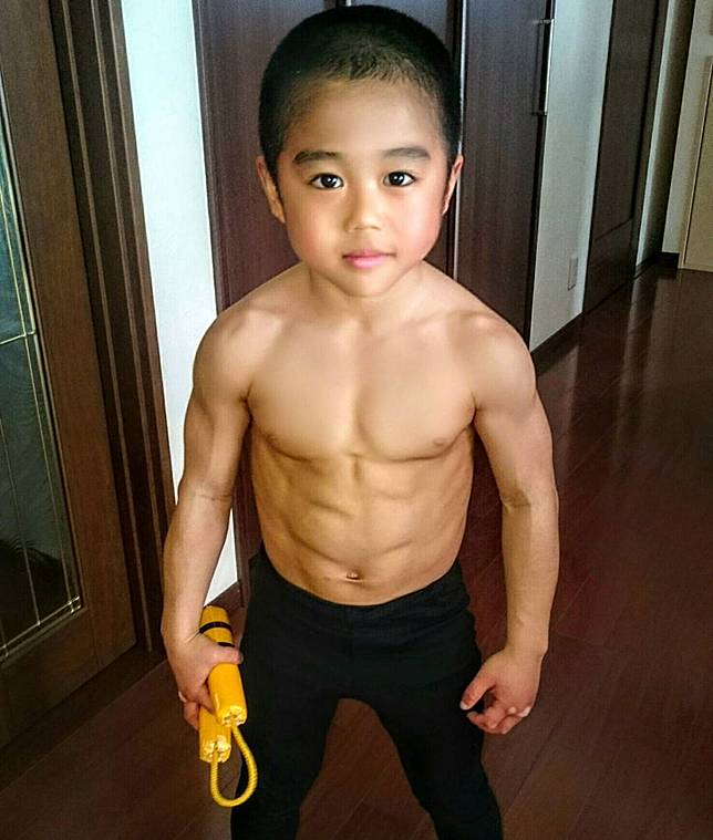 1. Baru berusia 8 tahun, tubuh Ryusei sudah sangat six pack loh.