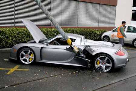 Duh, Porsche mahal ini harus hancur berantakan gara-gara menabrak tiang. Biaya ngebenerinnya pasti mahal nih.