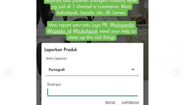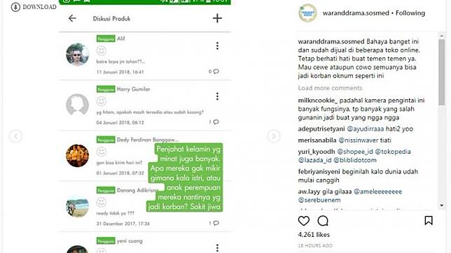 "Dear @tokopedia tolong ban/take out seller yang jual produk seperti ini dong. Ini produk bahaya banget buat cewek."