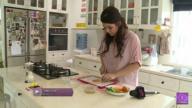 Menggunakan dapur bentuk L, membuat sirkulasi kerjda di dapur lebih baik, sama dengan dapur yang dimiliki oleh istri dari Rifat sungkar ini.