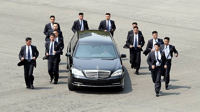 Bukan cuma saat datang, kala Kim meninggalkan Korsel untuk makan siang di Korut, dengan siap sedia mereka membentuk perisai manusia di sekeliling mobil yang ditumpangi. Sembari berlari kecil keseluruhan bodyguard tersebut mengawal mobil Kim sampai ke Korut.