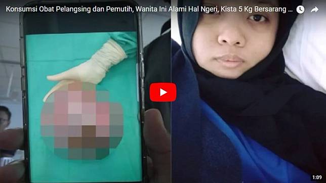Ditengarai obat pelangsing dan pemutih itulah yang membuat timbulnya kista seberat 5 kilogram di rahimnya.