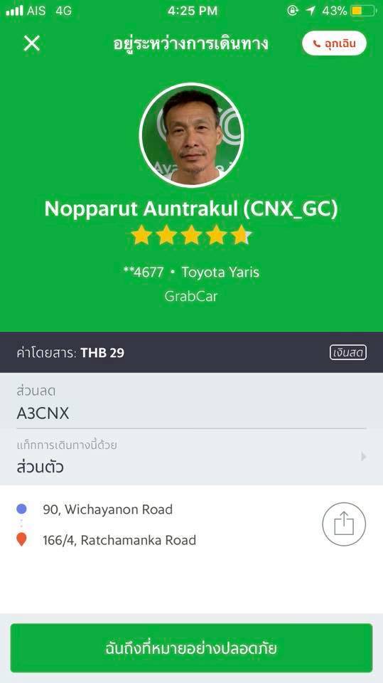 Sornpong Papachok juga menjelaskan kalau driver Grab tersebut cukup ramah kepadanya.