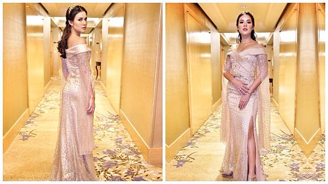 Warna emas juga menambah kesan mewah pada diri Raisa.