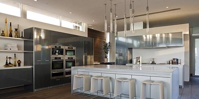 Selain itu terdapat juga dapur berukuran besar dan memungkinkan menjadi tempat pesta para pesohor, ruang makan kasual, ruang keluarga berikut perlengkapan hiburan elektronis tercanggih, serta kantor yang berada di bagian belakang rumah.