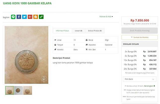Melansir dari Intisari, terdapat uang koin seribu rupiah yang memiliki gambar kelapa sawit dijual dengan harga jutaan di situs jual beli online, lho!