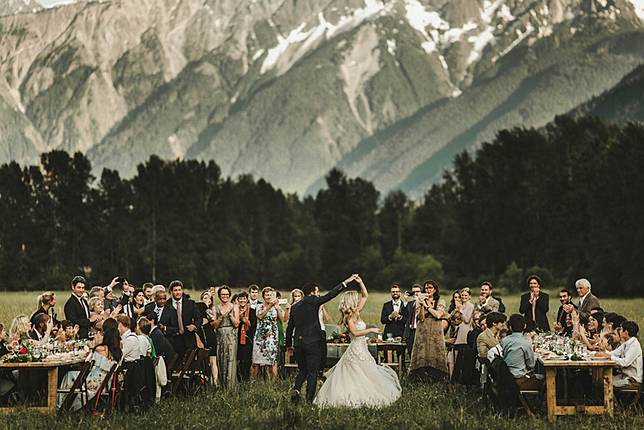 4. Fotografer Mike Vallely berhasil menangkap momen yang cantik kala pasangan berbahagia ini menari di hadapan para tamu dengan latar pemandangan Lembah Pemberton yang menakjubkan di Kanada. '"Jika kita hanya memiliki satu gambar untuk menggambarkan hari ini, inilah saatnya" seperti itulah gambaran foto tersebut.
