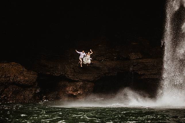 7. Pernikahan identik dengan pesta dan kemeriahan. Tapi, fotografer Ropate Kama berhasil mengambil sisi lainnya, yakni saat pasangan pengantin menjatuhkan diri ke air terjun. Lokasi yang sangat indah menjadi poin plus dari foto ini.