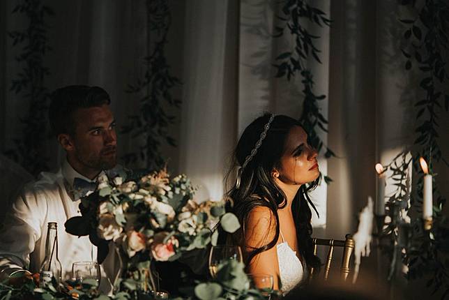 8. Selain bahagia, pernikahan juga menciptakan rasa haru di benak sang pengantin. Seperti foto ini di mana pengantin wanita terlihat menangis hingga maskara yang dipakainya luntur saat ia mendengarkan pembacaan pidato pernikahan.