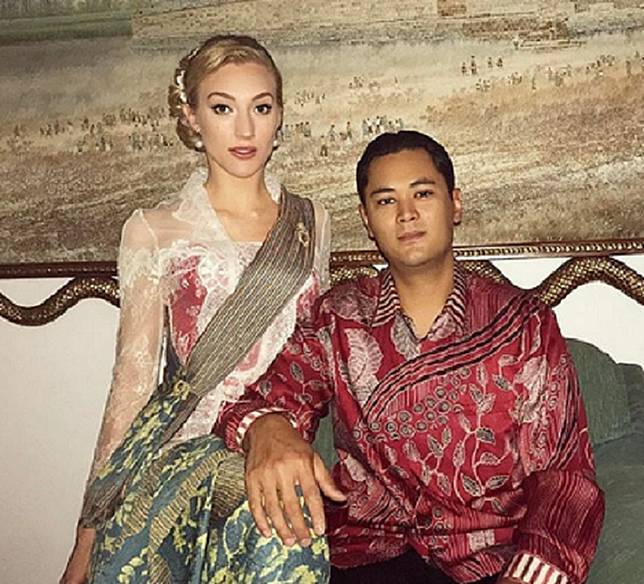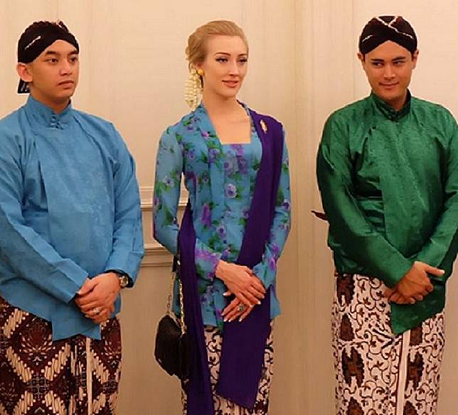 Wanita bule ini terlihat elegan dengan busana kebaya dan kain batik.