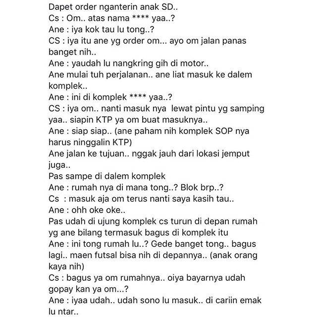 Namun setelah orderan selesai dan si anak berjalan ke arah rumah, rupanya driver tak langsung pulang.