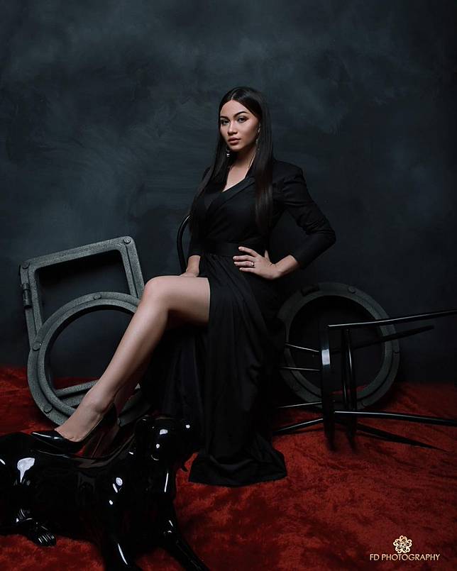 4. Bergaya ala ratu kerajaan, Ariel mengenakan dress unik berwarna hitam.